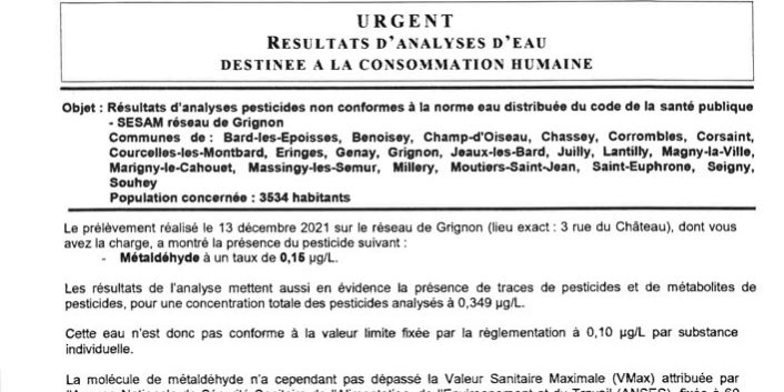 Jan202022Informations L’ARS a rendu son verdict concernant les analyses d’eau de consommation sur la commune. Consulter le résultat Catégorie : Informations20 janvier 2022Navigation articlePrécédent Article précédent :Sensibilisation aux violences sexuelles pour les 15-25 ansSuivantArticle suivant :Travaux d’élagage sur la communeArticles similairesMise en garde de la gendarmerie : faux éboueurs et faux agents communaux5 novembre 2025Arrêté de circulation piétonne interdite dans un but de sécurité publique10 octobre 2025Arrêté de circulation interdite pour cause de travaux10 octobre 2025Le Mouchot Show, Festival des énergies solaires et des technologies sobres – Samedi 13 septembre 2025 à Semur-en-Auxois11 septembre 2025Projet d’exploitation d’une centrale d’enrobage au bitume à chaud à Le Val Larrey28 août 2025Fin du niveau de vigilance sévère feux de foret – Morvan Auxois et Côte Arrière Cote28 août 2025